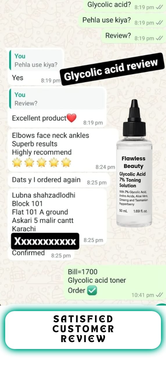 Key Ingredients Glycolic Acid , Water (Aqua) , Aloe Barbadensis Leaf Water , Rosa Damascena Flower Water,
