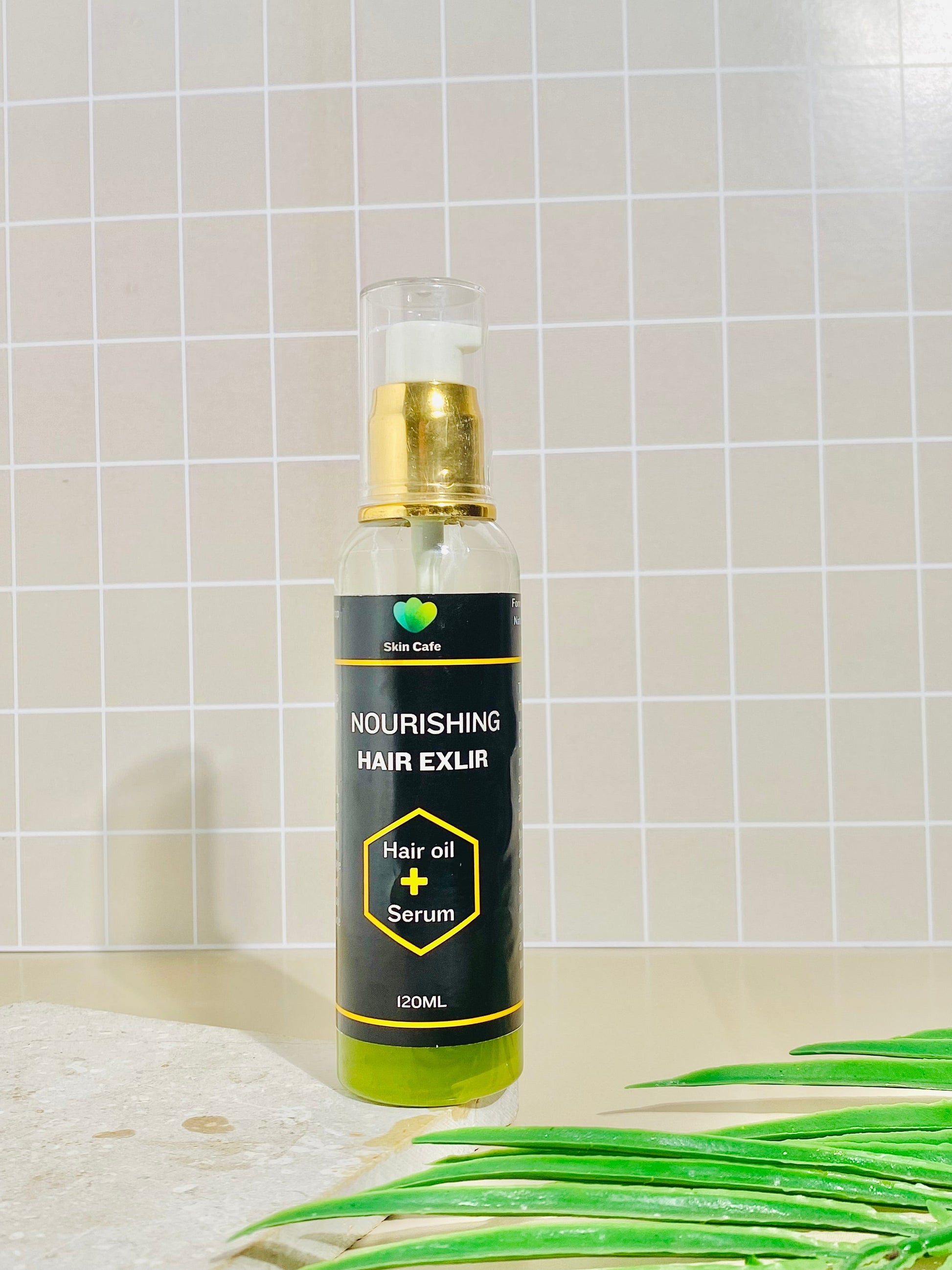 Our Nourishing Hair Elixir is designed to deliver comprehensive hair care, targeting hair fall, promoting new growth, and resolving various hair issues. Crafted with a blend of potent natural ingredients, this elixir strengthens your hair from root to tip, ensuring your locks are vibrant, thick, and full of life.