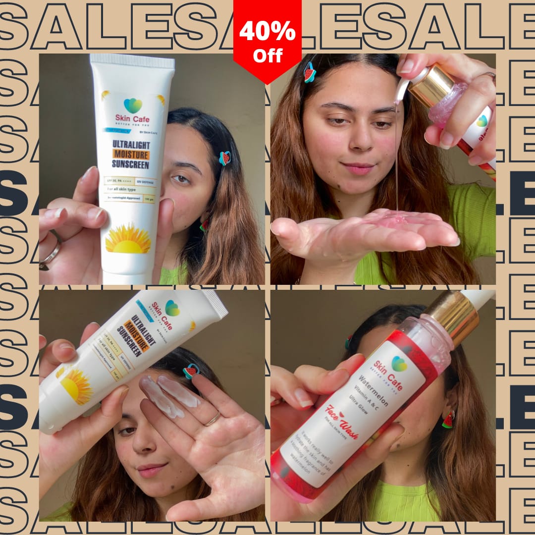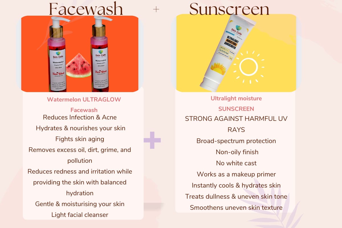 Introducing our exclusive Summer Deal featuring two must-have products for radiant skin under the sun: Minerals Sunscreen and Watermelon Facewash. Perfectly curated to keep your skin protected, hydrated, and glowing throughout the summer months. Don't miss out on this limited-time offer to enjoy the best of skincare essentials!